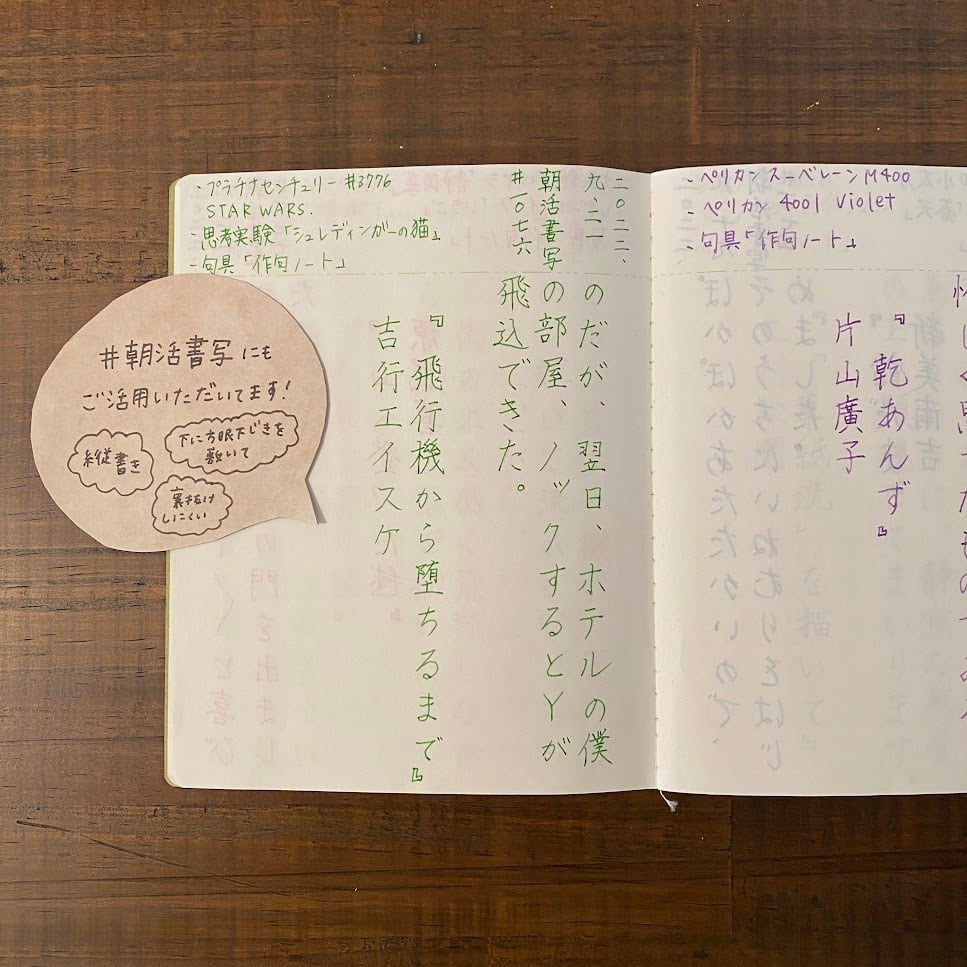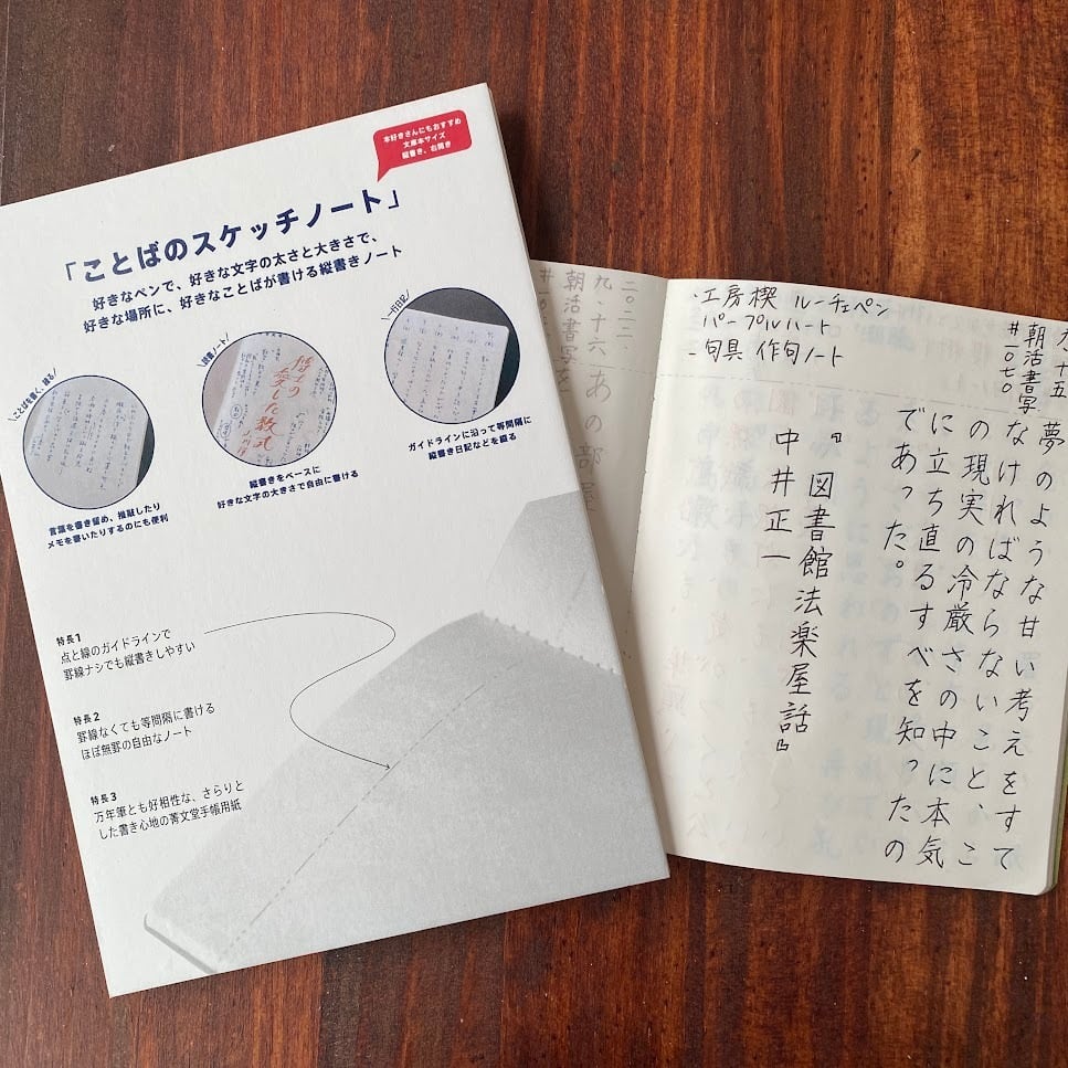 俳句を一句縦書きで書くのにちょうどいいサイズ感の、縦書きを楽しむ文庫サイズのノートです。