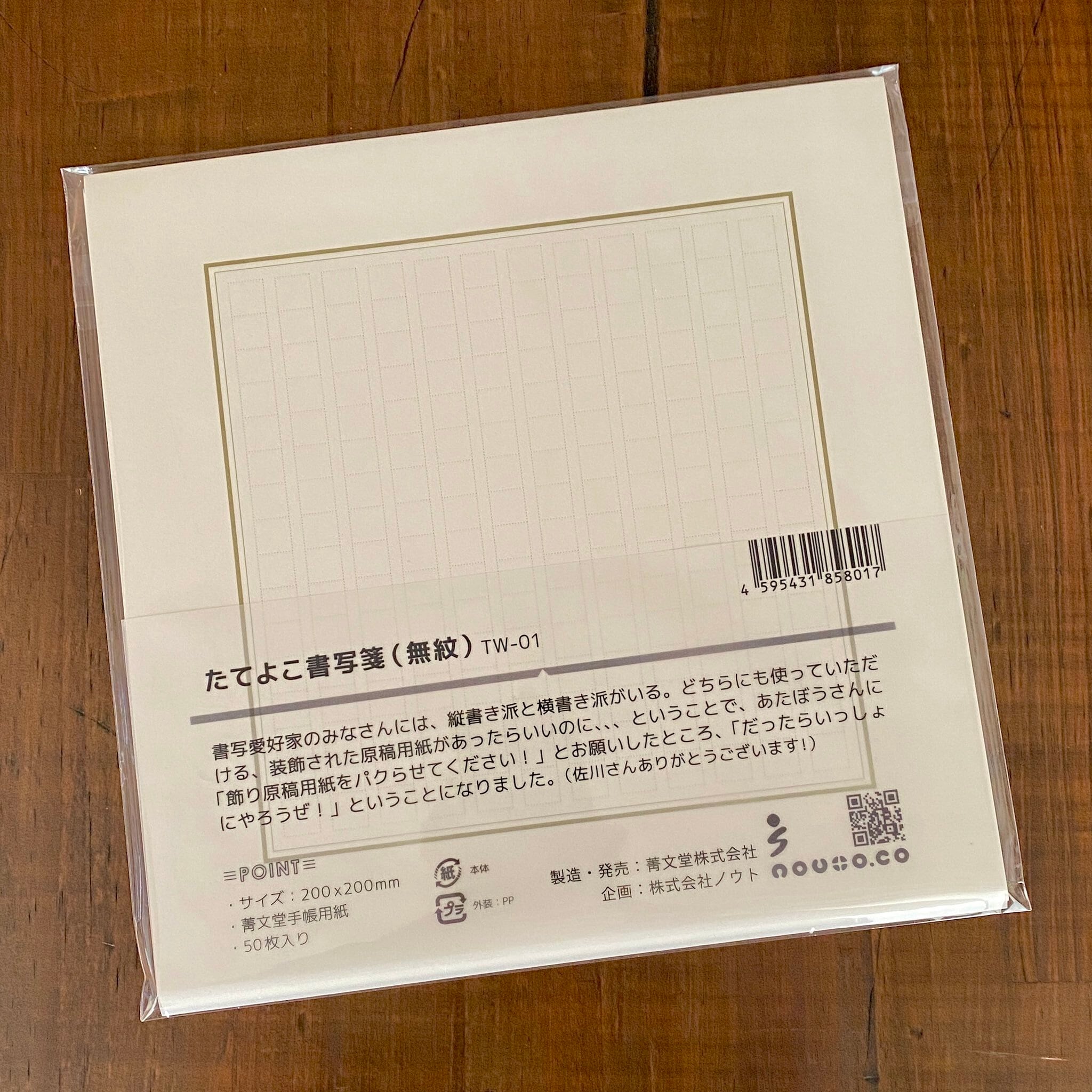 不躾な無茶振りを受け止めてくださったあたぼうさんに感謝です。ちなみに、あたぼうさんから発売となる商品とはサイズも紙も異なります。「正方形で縦横どちらでも使える飾り付きの原稿用紙というコンセプト」のコラボとなります。