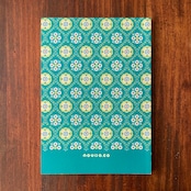 ※三方金の加工は、金フィルムを糊で接着する作業となりますが、その過程で糊が少し内側に侵食し、印刷のインクに影響を与える場合があります。今回のomitment柄については、黄色の表紙部分に裏表紙の緑色が少し付いているものがあります。あらかじめご了承ください。(最後の写真参照)