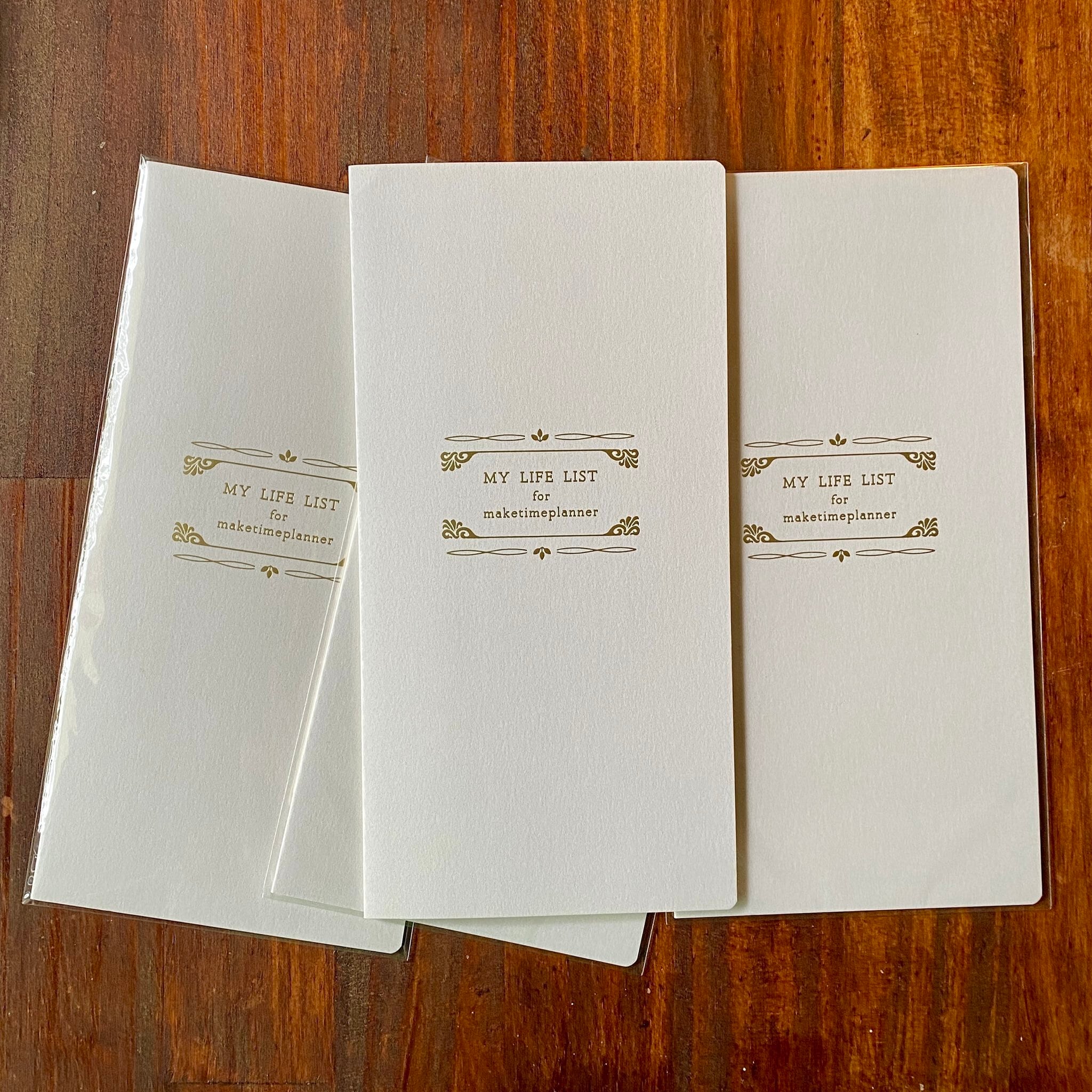 ということで、A5スリムのお供のノートのセットは、挟むとちょうどいいサイズのバケットリスト、本文に使われている菁文堂手帳用紙を普段から気軽に使っていただくためのメモ用紙が入っています。