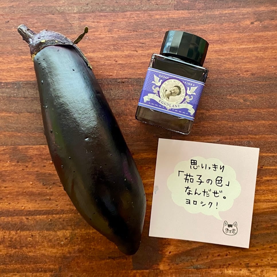「三茄子」は、「茄子紺」をもっと煮詰めたような濃度。冒頭に書きましたように、筆記線が黒に見えるようなインクになっております。
